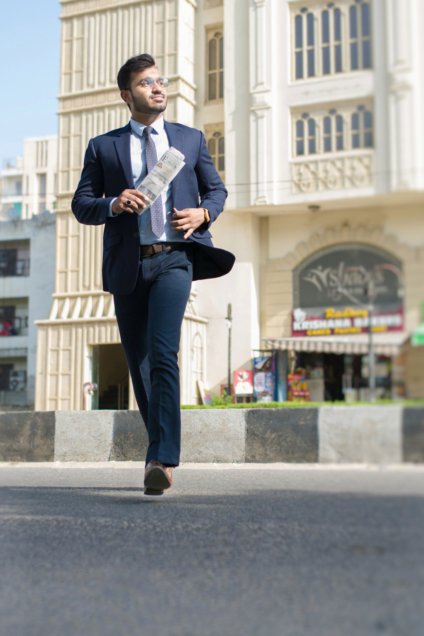 The photo series has the corporate mood. He takes a walk in three different suits. It talks about the style he carries when he walks to the workplace in corporate look.